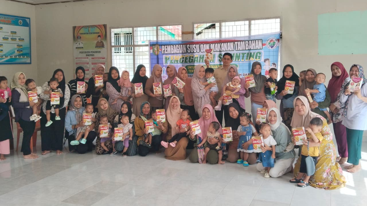 Pemerintah Desa Sidodadi, Kecamatan Logas Tanah Darat, Kabupaten Kuantan Singingi, melaksanakan kegiatan pembagian susu dan makanan tambahan sebagai upaya pencegahan stunting.